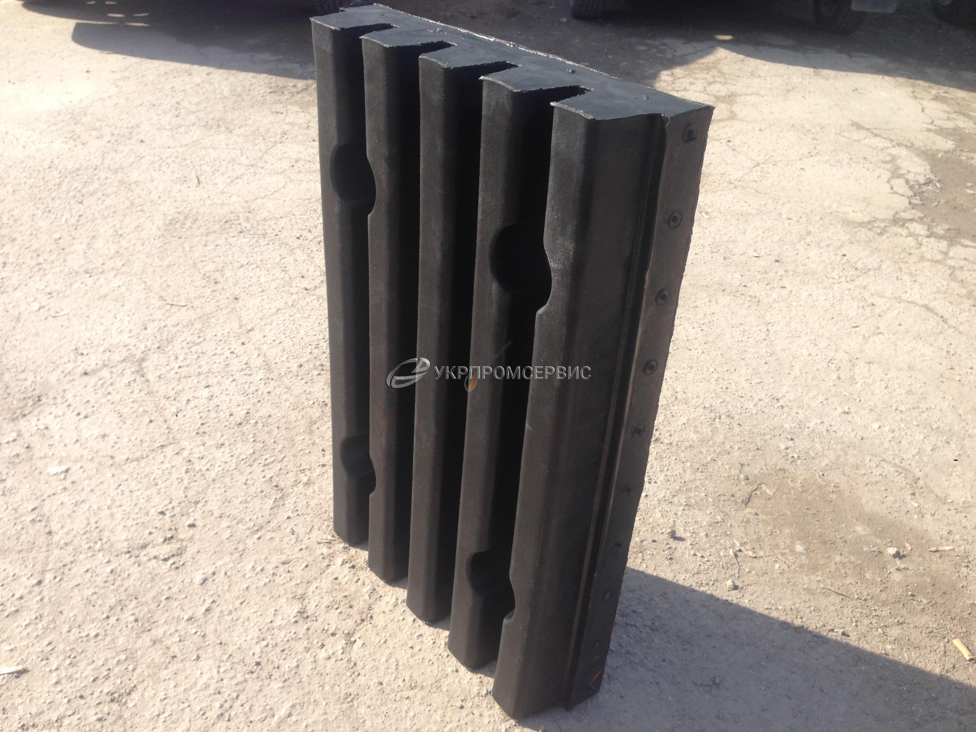 Для изготовления плит формовых используют только очень плотную износостойкую резину, поскольку нагрузки на рабочие поверхности вагоноопрокидывателя — достаточно мощные. Для защиты поверхностей платформы на привальную стену крепится рифленая резиновая плита. Применяются такие плиты как для стационарных вагоноопрокидывателей, так и для роторных.
